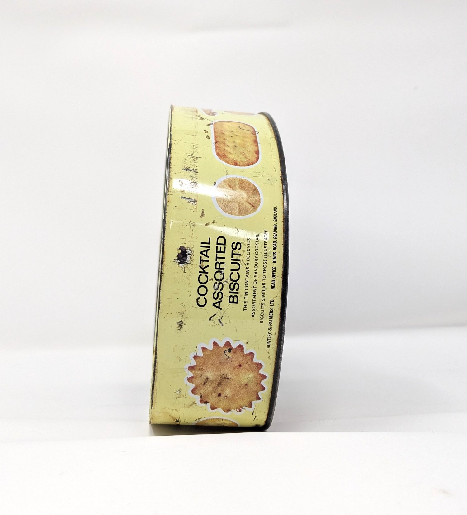 The tin is old and has signs of wear but has been treated to prevent any further deterioration.